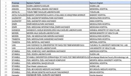 للقادمين من تركيا تم اعتماد مراكز فحص خلو كورونا محددة