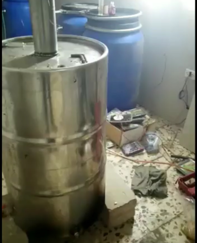 ضبط شخص يقوم بتصنيع خمور بصورة مخالفة للقانون داخل احد المحال التجارية في محافظة الزرقاء .