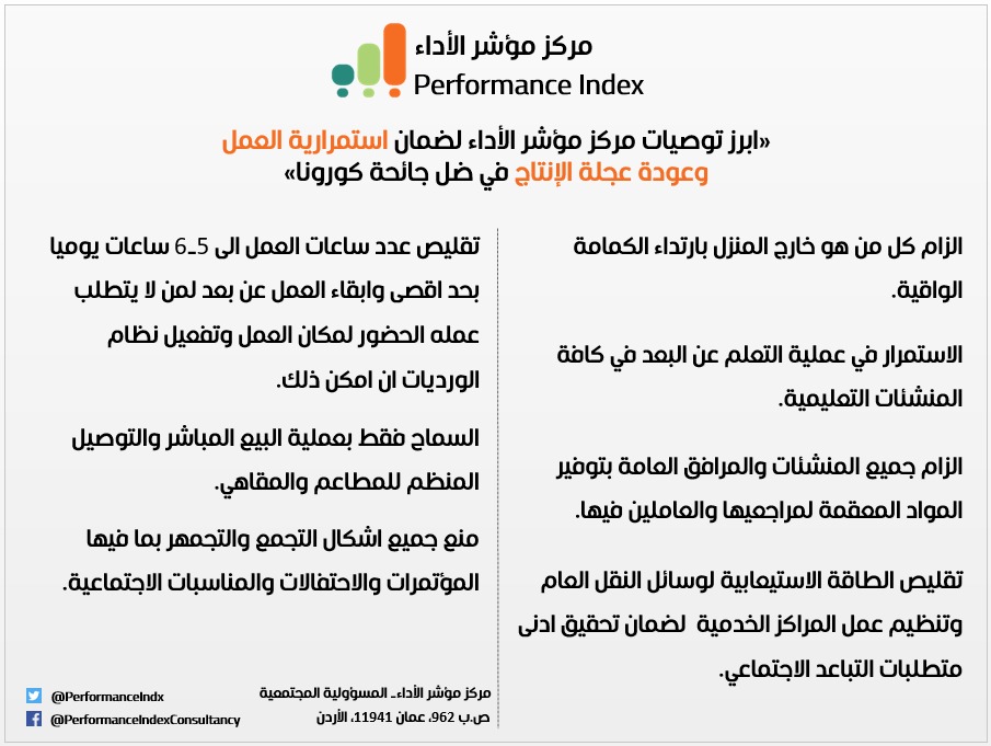 "مركز مؤشر الأداء يوصي الحكومة بالعودة للعمل ودفع عجلة الإنتاج"