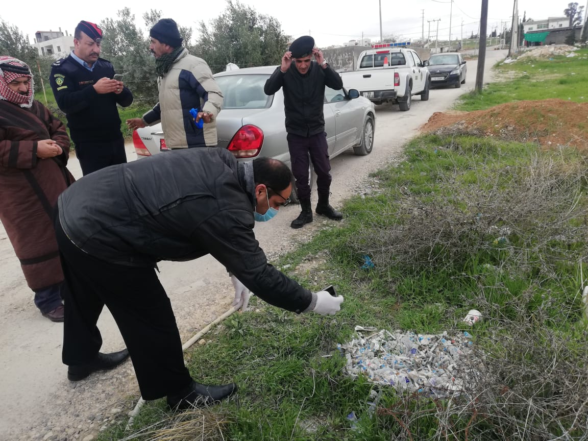 الاجهزه الأمنية تتحفظ على مستهلكات طبية مستعمله ملقاه على قارعة الطريق