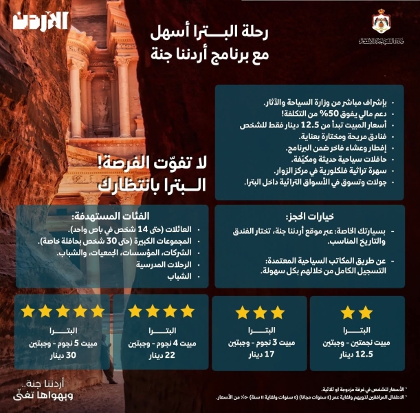 السياحة": فئات جديدة وإطلاق رحلات مدرسية إلى البترا ضمن "أردننا جنة