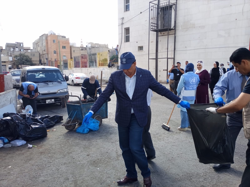 "متصرف لواء عين الباشا حاكم العلاونه يشرف على حملة نظافة في مخيم البقعة ويُدخل البسمة إلى قلوب أصحاب الهمم"