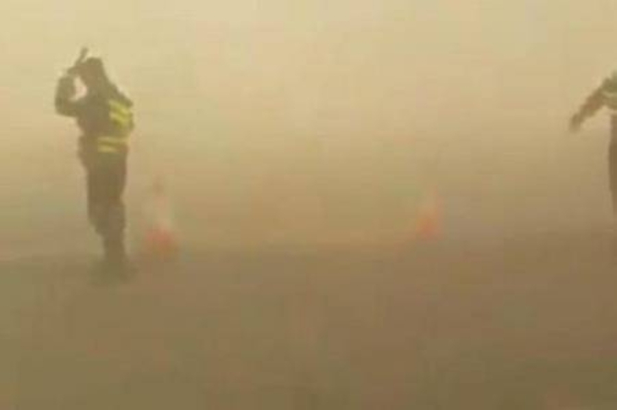 الامن العام : قطع حركة السير باتجاه حدود العمري ( من محطة العمري باتجاه الحدود ، ومن محطة طوبة باتجاه الحدود ) بسبب الرياح الشديدة المثيرة للغبار وتدني مدى الرؤية