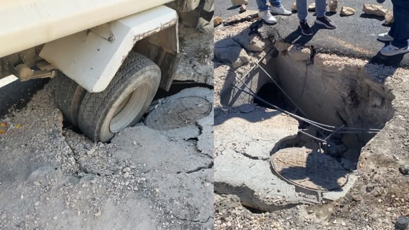 انهيار جزئي في شارع رئيسي بالمزار بسبب ضعف البنية التحتية