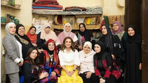 الملكة رانيا تزور السلط وتتجول في ساحة العين
