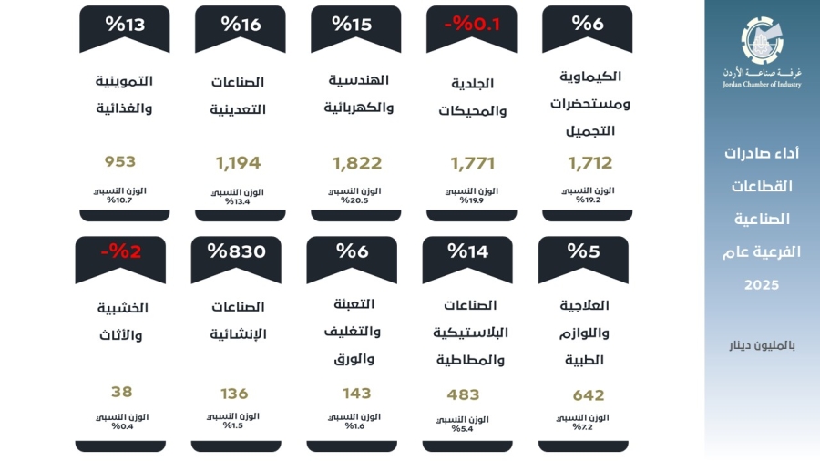 8 قطاعات تقود نمو صادرات الصناعة الأردنية العام الماضي