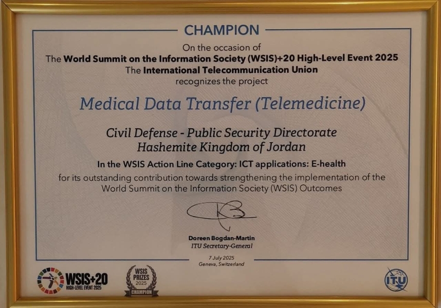 الدفاع المدني يحصل على جائزة القمة العالمية لمجتمع المعلومات