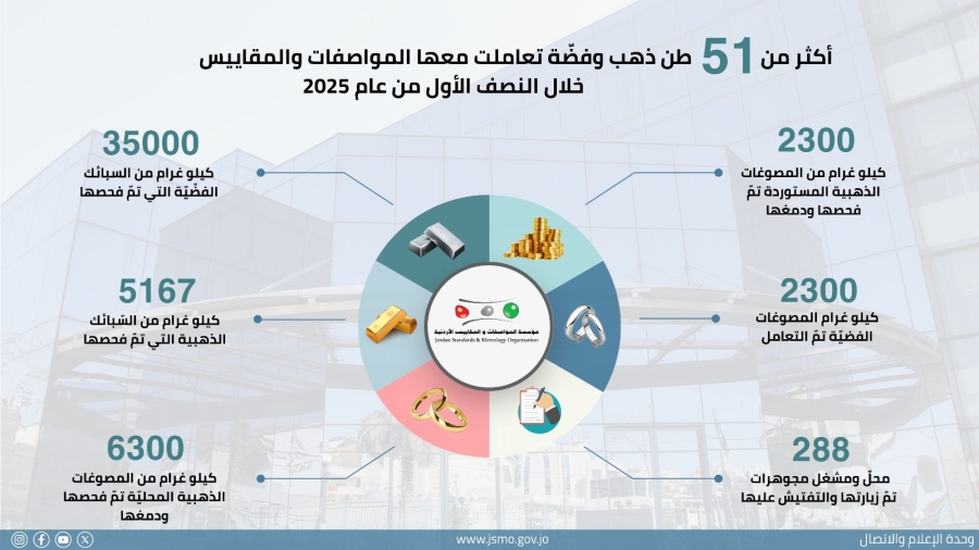 مؤسسة المواصفات والمقاييس تتعامل مع أكثر من 51 طن ذهب وفضّة في 6 أشهر
