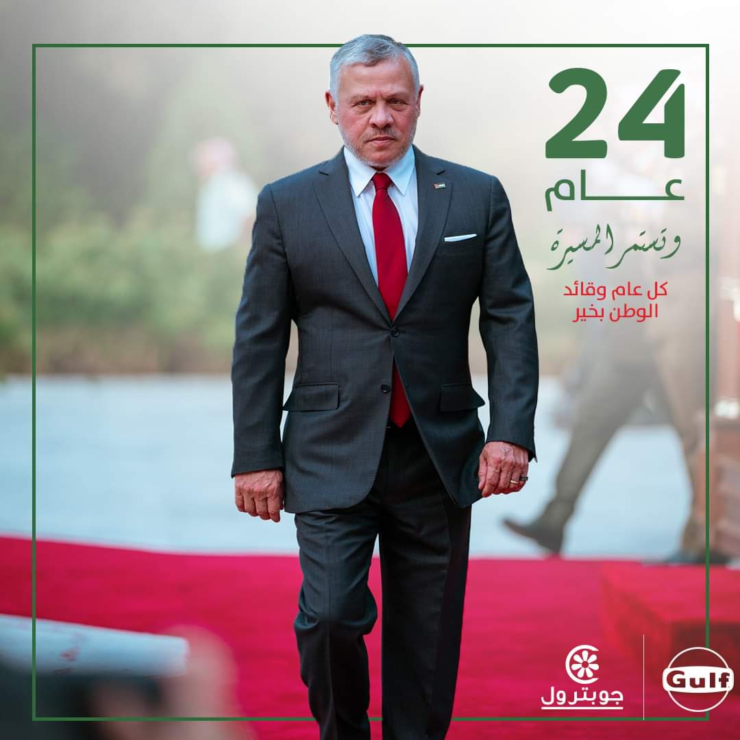 "جوبترول" تهنئ جلالة الملك بمناسبة عيد الجلوس الملكي ويوم الجيش والثورة العربية الكبرى