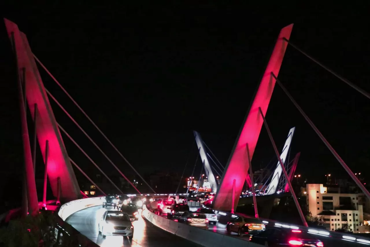 أمانة عمّان تضيء جسر عبدون بألوان العلم القطري