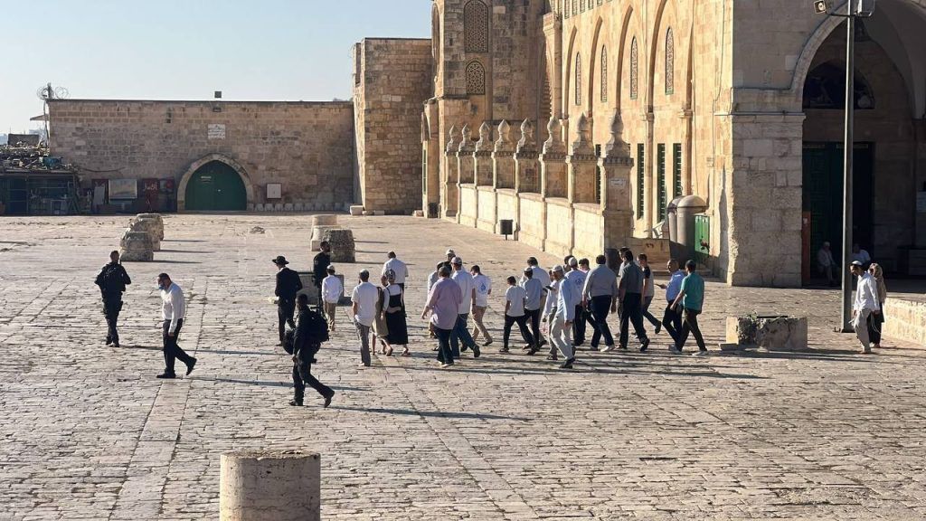 قطيع من تنظيم الدولة اليهودية يقتحمون الأقصى بحماية مشدّدة