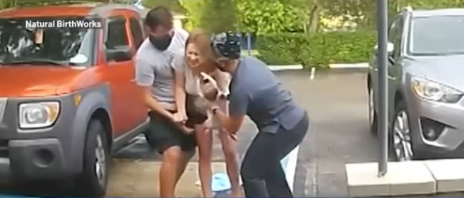 أمريكية تضع مولودها وهي واقفة متسمرة في الشارع ( صور)