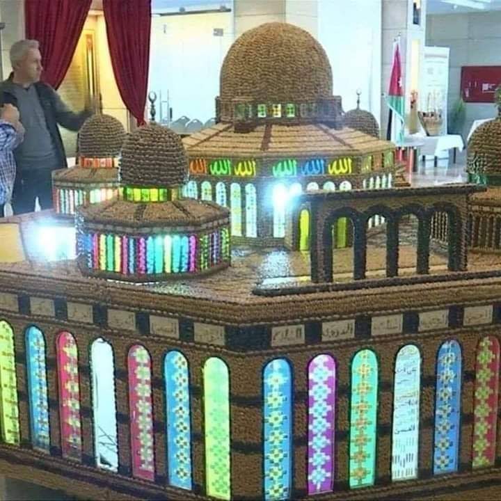 الفنان العياصرة يستخدم عجم الزيتون في بناء مجسمات .