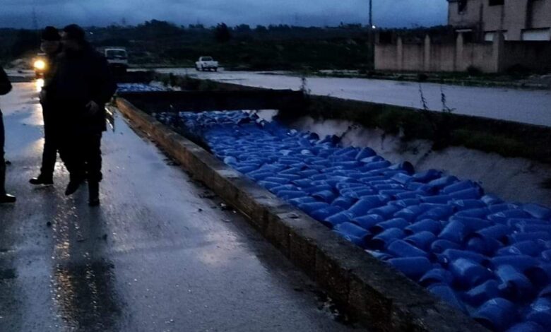 سوريا … السيول تضرب وحدة تعبئة الغاز باللاذقية وتجرف اسطوانات الغاز