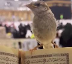 شاهد.. "عصفور" فوق مصحف داخل الحرم يخطف الأنظار