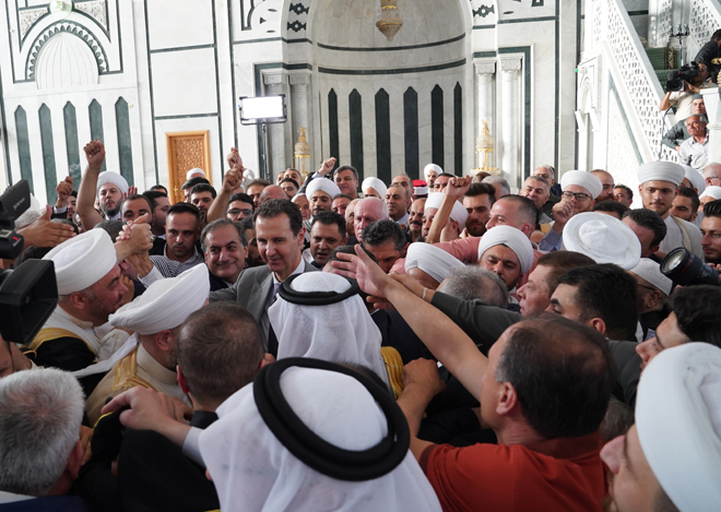 الأسد يؤدي صلاة عيد الأضحى في مدينة حلب في شمال سوريا لاول مرة منذ عام 2011