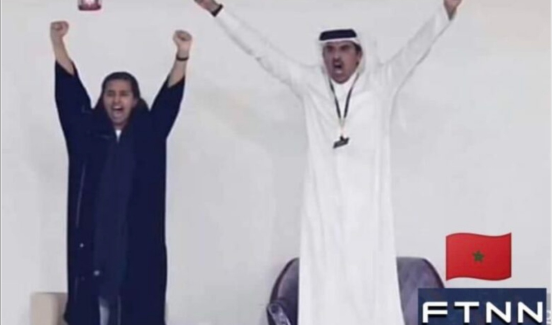 شاهد بالفيديو أمير قطر يحتفل بفوز المغرب
