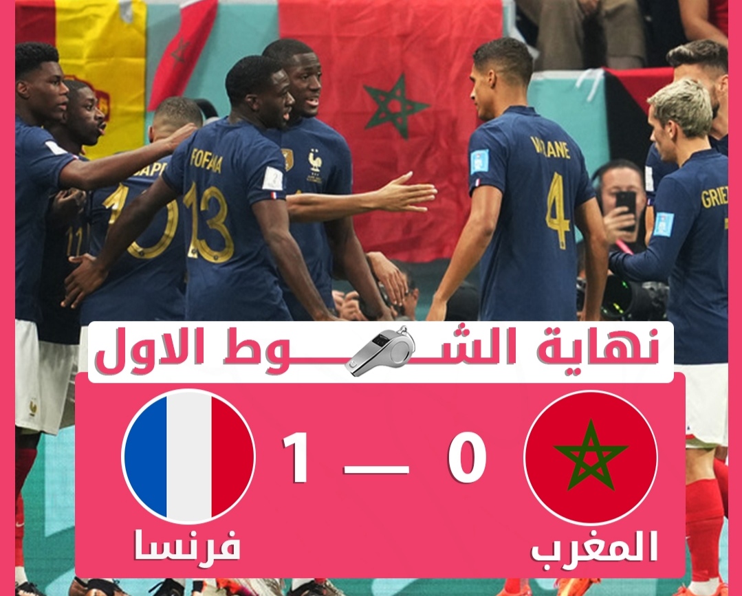 نهاية الشوط الأول من مباراة منتخبي فرنسا و المغرب