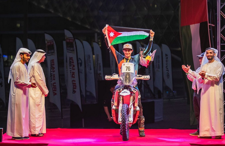 عبد الله أبو عيشة يرفع علم الأردن في رالي أبوظبي الدولي