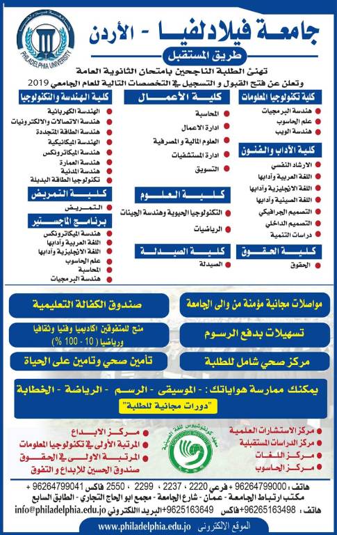 فيلادلفيا تحتل المرتبة الأولى في الجامعات الخاصة الأردنية