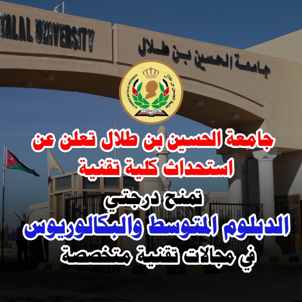 جامعة الحسين بن طلال تستحدث كلية تقنية تمنح درجتي الدبلوم والبكالوريوس في مجالات تقنية متخصصة
