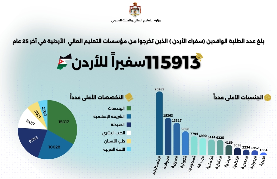 أكثر من 115 ألف خريج وافد من الجامعات الأردنية خلال 25 عامًا